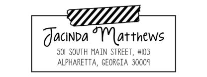 This washi tape style self inking return address stamp will make your mailings pop! The stamp comes customized with your name and address. Makes a great gift for friends, family, teachers, real estate clients…or yourself! Comes pre-filled with black, oil based ink. Max impression size: 2.5″x1″ (font size may vary depending on your text). The stamp is refillable and makes 25,000+ impressions then it can be re-inked to make thousands more impressions!